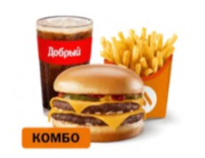 Состав: Большой Комбо состоит из Двойного Чизбургера, Картофеля на выбор и Напитка на выбор. Цена Комбо может меняться в зависимости от комплектации.
